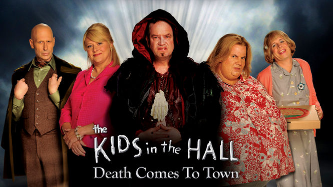 The Kids in the Hall made a mini series after touring together, years after their show ended, and they have not forgotten how to push each other for the laughs. I started watching their original tv show (5 seasons, 1988-1994) when I was too young to understand all of the jokes and references, they have no doubt influenced my own sense of humor. It was probably the first show I really liked that my parents didn’t care for me watching, that seemed to make it cooler. They were all Canadian, hilarious each with their own unique talents, and when they got together the laughs were multiplied (and dirtier). They made the movie Kids in the Hall: Brain Candy in 1996, have performed live on stage, and got back together for this mini-series which differed from their sketch comedy show as there was an on going story throughout. The title is the plot, there are some deaths in a small (fictional) Canadian town, and each of the 5 leads all play multiple characters. Even the opening theme music is catchy like the original show’s, although that one is hard to beat by Shadowy Men On A Shadowy Planet.
