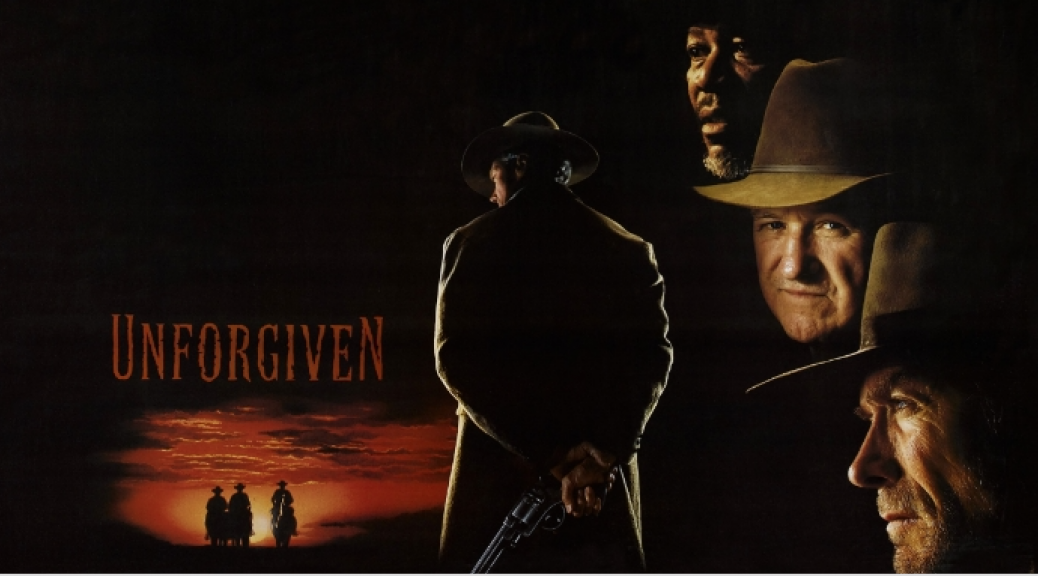 Unforgiven is a well respected and highly awarded western starring Clint Eastwood, Gene Hackman, and Morgan Freeman released in 1992. Somehow this film was still on my cinematic bucket list but as I am in the middle of playing Red Dead Redemption (a well respected and highly awarded western video game, 2010) and it was Clint’s birthday recently (May 31st), I decided to head out west. The script had floated around for nearly 20 years before it was made, Gene Hackman even passed on it (for the lead role) before Clint made a push to make it. Filming took place in Alberta including Calgary, Drumheller, and Brooks, (except for one sequence, including an active train in California) and Clint wrote the score of the film himself. Clint selected a great choice as his last western film, as it went on to win 4 Oscars for editing, supporting actor (Gene), directing (Clint), and best picture, (it was also nominated for 4 more, Clint’s acting, sound, writing, and art direction/set decoration). Westerns do not often win best picture Oscars, the only other 3 are Cimarron (1931), Dances With Wolves (1990), and No Country For Old Men (2007).