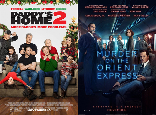 The new releases this weekend include Daddy’s Home Two, (comedy with Will Ferrell and Mark Wahlberg) and Murder on the Orient Express, (crime mystery directed by and starring Kenneth Branagh).