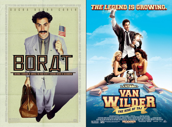 Recently had a craving for 2 comedies from 2006, Borat: Cultural Learnings of America for Make Benefit Glorious Nation of Kazakhstan starring Sacha Baron Cohen and Van Wilder 2: The Rise of Taj starring Kal Penn. Both films loved sexually charged jokes, forced accents (Cohen is British and Penn is American), and had scenes filmed in Romania (also the USA in Borat and the UK in Rise of Taj). Cohen had already introduced the character in his Da Ali G Show (as early as 1998), had a voice in Madagascar (Julien the lemur, 2005), and only 3 months earlier in 2006 had stolen scenes in Talladega Nights: The Ballad of Ricky Bobby (opposite Will Ferrell). Penn had already made Harold & Kumar Go to White Castle (co-starring John Cho), was in The Namesake 3 months earlier (drama mirroring his own life as a son of Indian immigrants), and was in the original Van Wilder starring Ryan Reynolds in 2002.